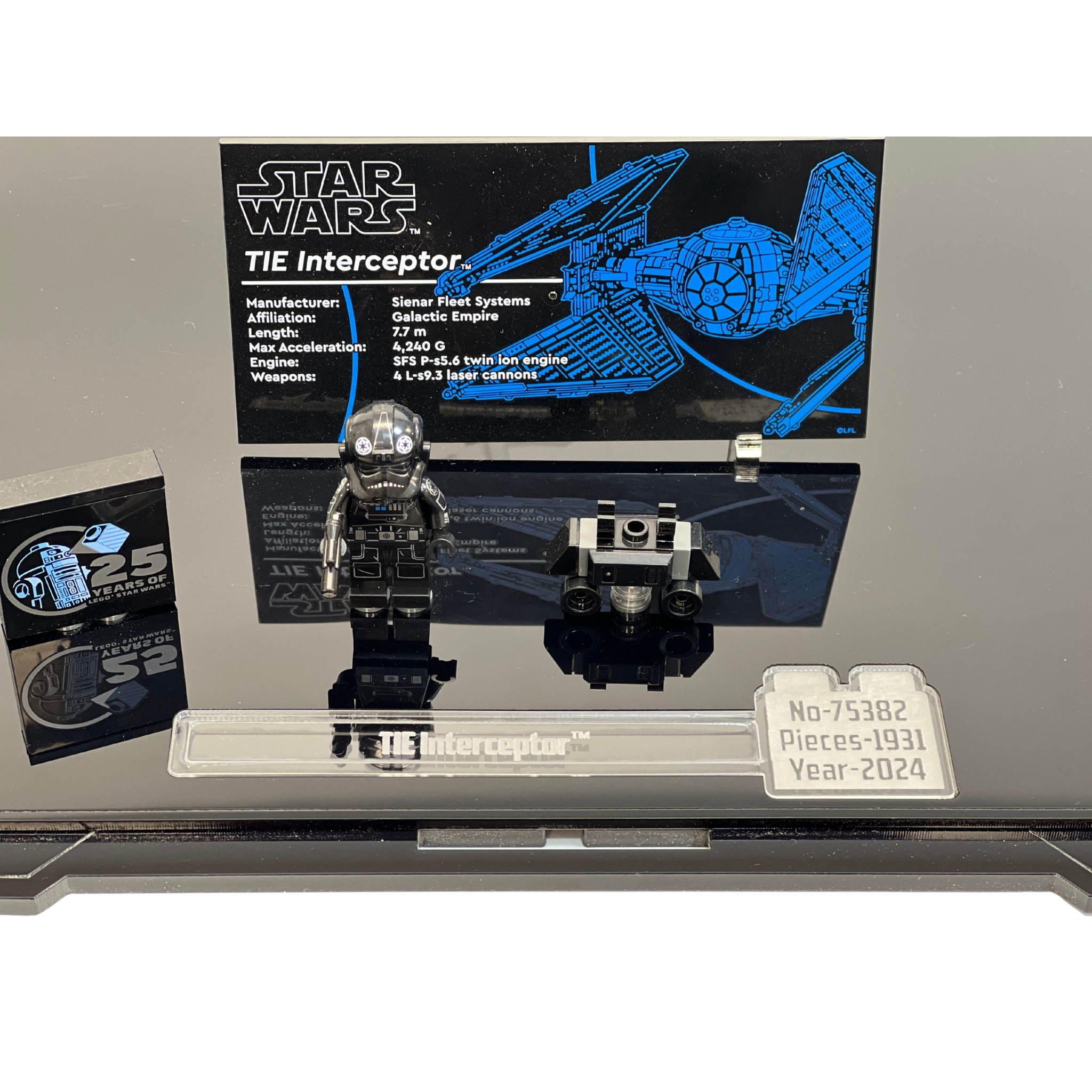 - Display case was specially designed for the (75382) LEGO® Star Wars: TIE Interceptor.