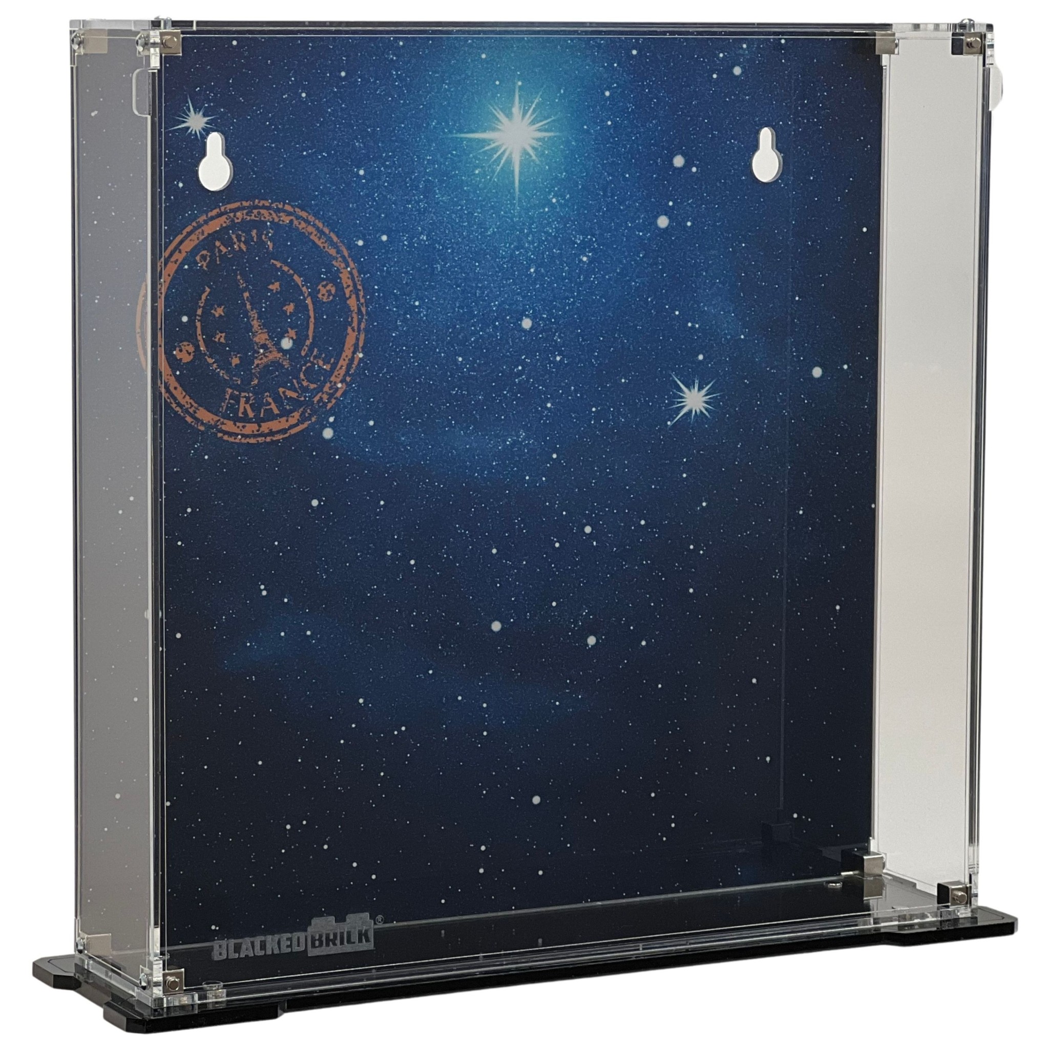 - Printed background using UV printing on the rear panel of the display case.